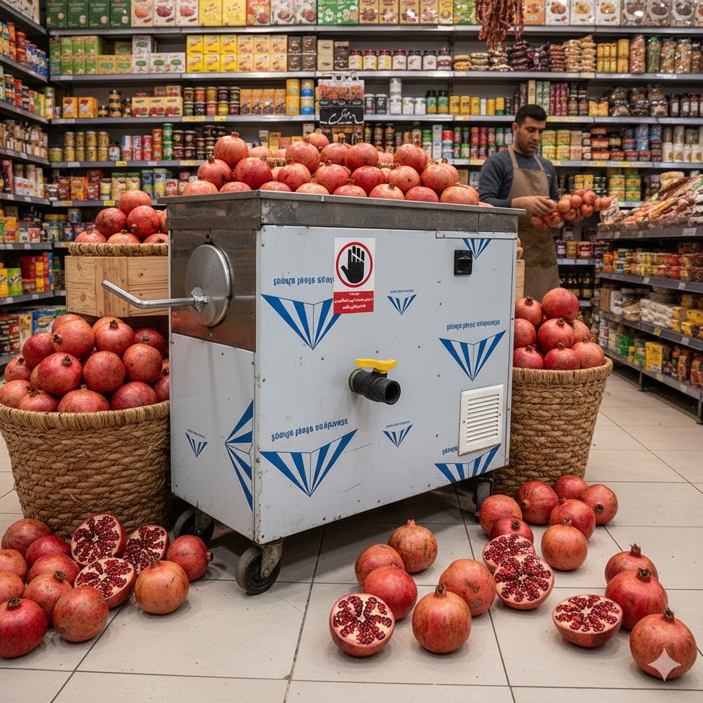 - عملکرد بهداشتی و استاندارد: قطعات ضدزنگ و سیستم آبگیری بهداشتی، کیفیت بالای آب انار را تضمین میکند.